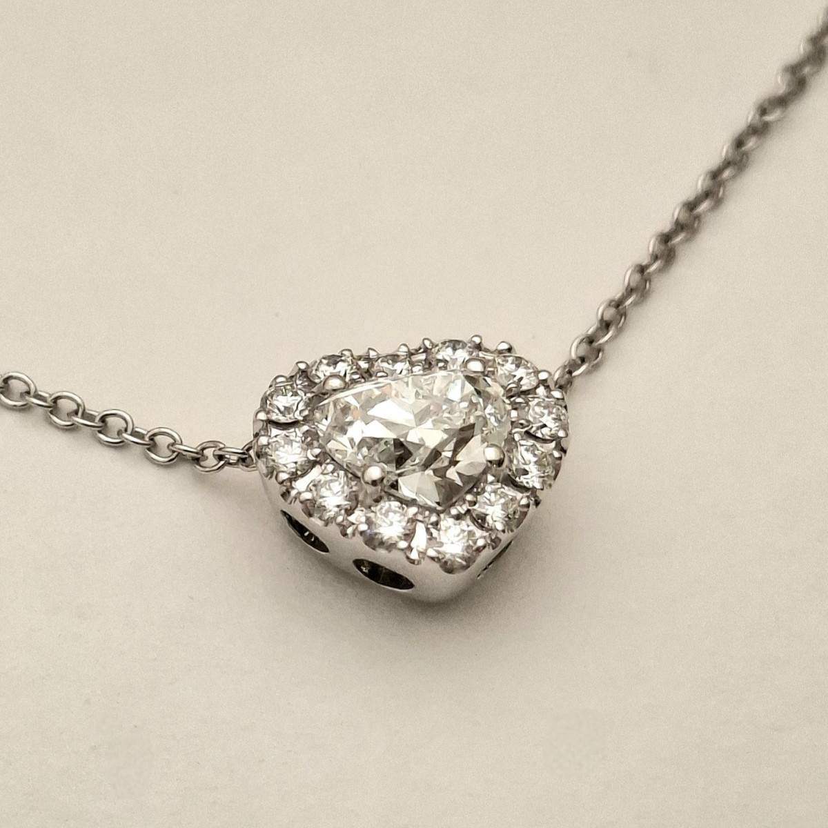 Merkmale: Collier 004-5053 750/-WG mit Diamant Herz-Anhänger F/VS2 und G/VS