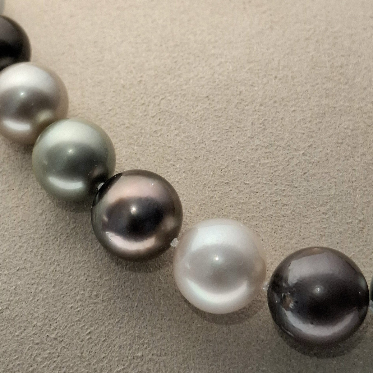 Ein Schmuckstück mit Persönlichkeit – diese Harlekin-Zuchtperlenkette begeistert durch ihr einzigartiges Farbspiel und verbindet klassische Perlenästhetik mit moderner Ausdruckskraft.