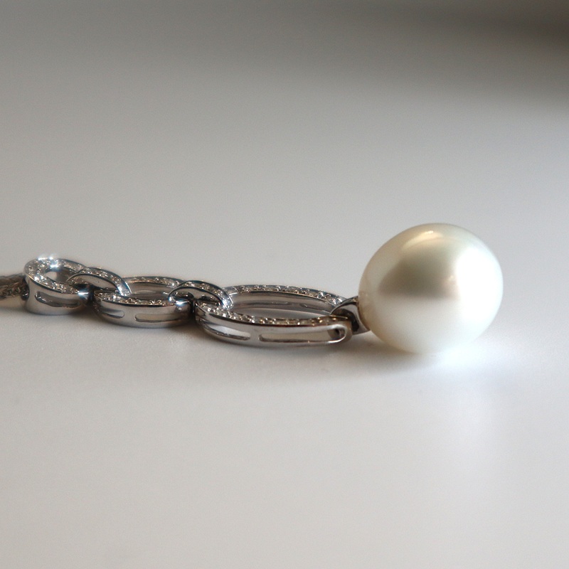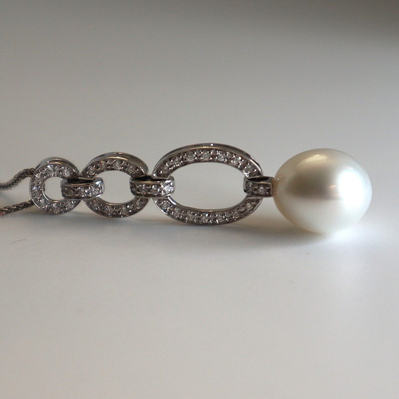 Catherine Sauvage Anhänger mit Kette 940-0059 "Boutique" 750/-WG mit 1 Südsee-Zuchtperltropfen und Diamanten 940-0059