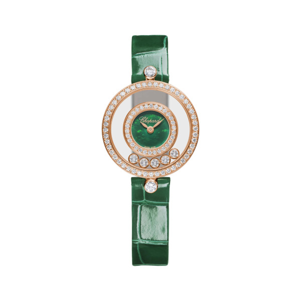 Ref. 203957-5209 - Seit 1976 die erste Happy Diamonds Uhr erfunden wurde, bringen die tanzenden Diamanten die Kollektion auf fröhliche Weise zum Strahlen. Die Happy Diamonds Uhren stehen in erster Linie für einen verspielten und entspannten, unabhängigen Geist, der offen für unbegrenzte Metamorphosen ist. Happy Diamonds wirbeln zwischen zwei absolut transparenten Saphirgläsern herum und vermitteln den Eindruck, dass die Diamanten die Haut berühren. Die berühmte Uhr gibt es neu mit langen, geschmeidigen Lederarmbändern, die, zweimal um das Handgelenk geschlungen, die betörende Präsenz dieser Uhr mit ihrem fröhlichen Charme verstärken. Little Diamonds Do Great Things