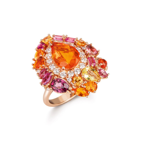 Ref. CH-RG03FO-01 - Inspiriert vom visionären Geist der Renaissance in Florenz, vereint diese Kollektion gekonnt farbige Edelsteine und prachtvolle geometrische Motive, um ein Kaleidoskop aus Formen, Farben und Dynamik zu erschaffen. Die hochwertige Fertigung jedes Einzelstücks aus der Kollektion ist nicht nur für jeden Betrachter sofort erkennbar, sondern auch für die Kundin durch maximalen Tragekomfort und exzellente Haptik spürbar.