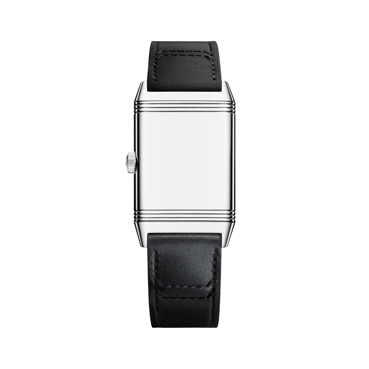 Ref. Q3868520 - Die Reverso Classic Monoface Small Seconds besticht durch zurückhaltende Eleganz und ist daher ideal für den täglichen Gebrauch. Mit einem doppelt veredelten Zifferblatt – guillochiert im Inneren, vertikal gebürstet an den Ränder – setzt das Zifferblatt stilvolle Akzente. Das Wechselspiel des Lichts bringt eine reliefartige Geometrie zum Vorschein, die an Münzstapel erinnert und den Minutenring, die arabischen Zahlen, die gebläuten Stabzeiger und die kleinen Sekunden bei 6 Uhr besonders betont. Die Gehäuserückseite bietet die Möglichkeit zur individuellen Gravur. Das mechanische Uhrwerk mit Handaufzug, Kaliber 822, verfügt über eine Gangreserve von 42 Stunden. Das schwarze Kalbslederarmband, entworfen von Casa Fagliano, ist mit einer klassischen Dornschließe ausgestattet.