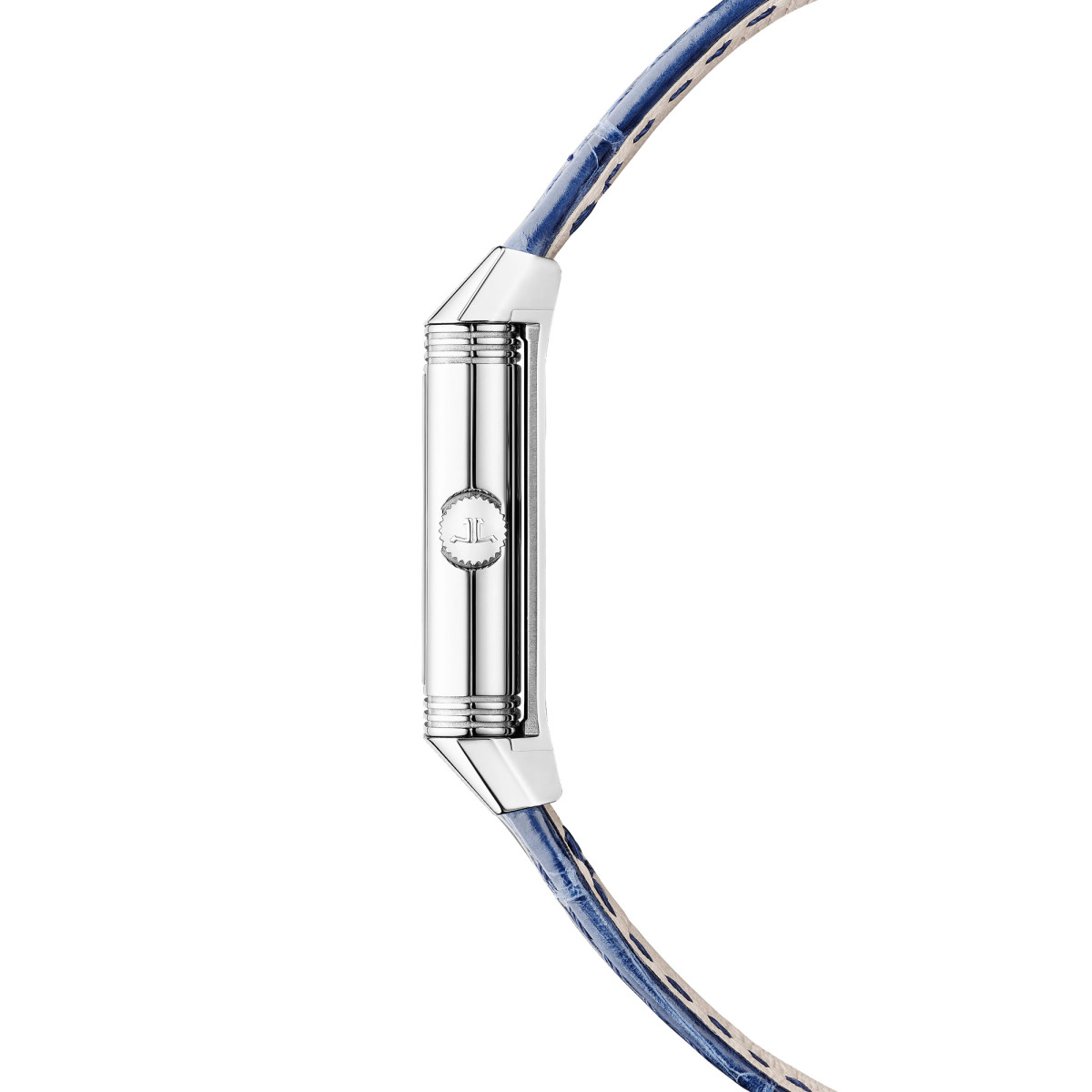 Ref. 3878520 - Mit ihrer schlanken, rechteckigen Silhouette (16,3 mm Breite) erinnert die Reverso Classic Monoface Origin an die Proportionen der ersten Reverso Gehäuse für Damen aus den 1930er-Jahren. Mit einem Quarzwerk ausgestattet, präsentiert der Zeitmesser eine schlichte Stunden- und Minutenanzeige auf einem kunstvoll veredelten Zifferblatt: innen guillochiert, außen vertikal gebürstet. Das silberfarbene Zifferblatt trägt 12 arabische Ziffern und gebläute Dauphine-Zeiger, die den sanften Schimmer des Armbands aus Alligatorleder aufgreifen. Wie der Name schon andeutet, kann die Rückseite des Zeitmessers individuell gestaltet werden – mit einer Gravur eines Motivs, eines Datums oder von Initialen.