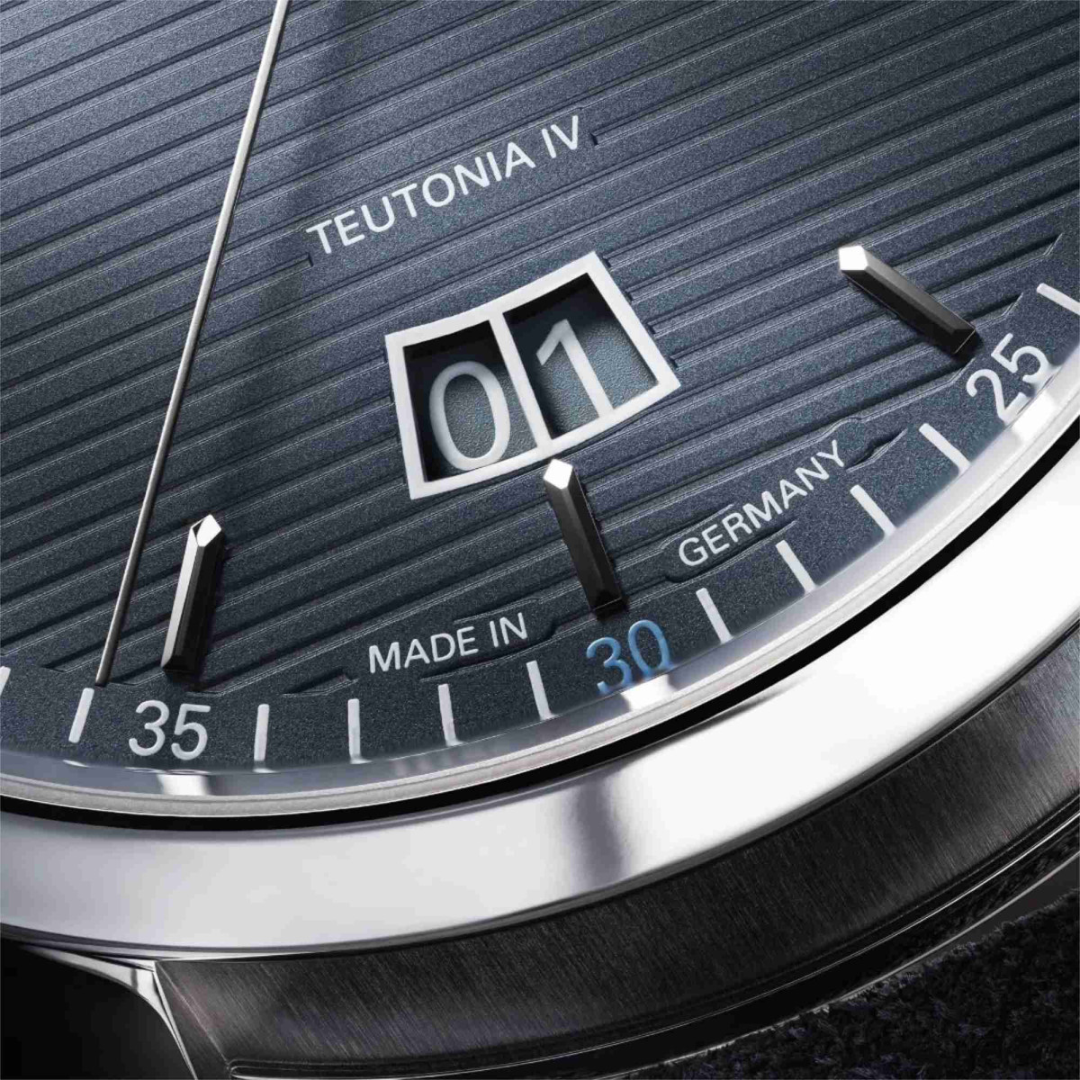 Ref. M1-44-75-1994-LB-V - Elegante Businessuhr und zeitloser Klassiker der Mühle-Kollektion: Als vierte Jubiläumsedition präsentiert sich die Teutonia IV Großdatum Edition 1994 mit eigens konstruiertem Modul-Uhrwerk in zwei Farbvarianten. Passend zum Jubiläum ist die Uhr auf jeweils 155 Exemplare pro Zifferblattfarbe limitiert.