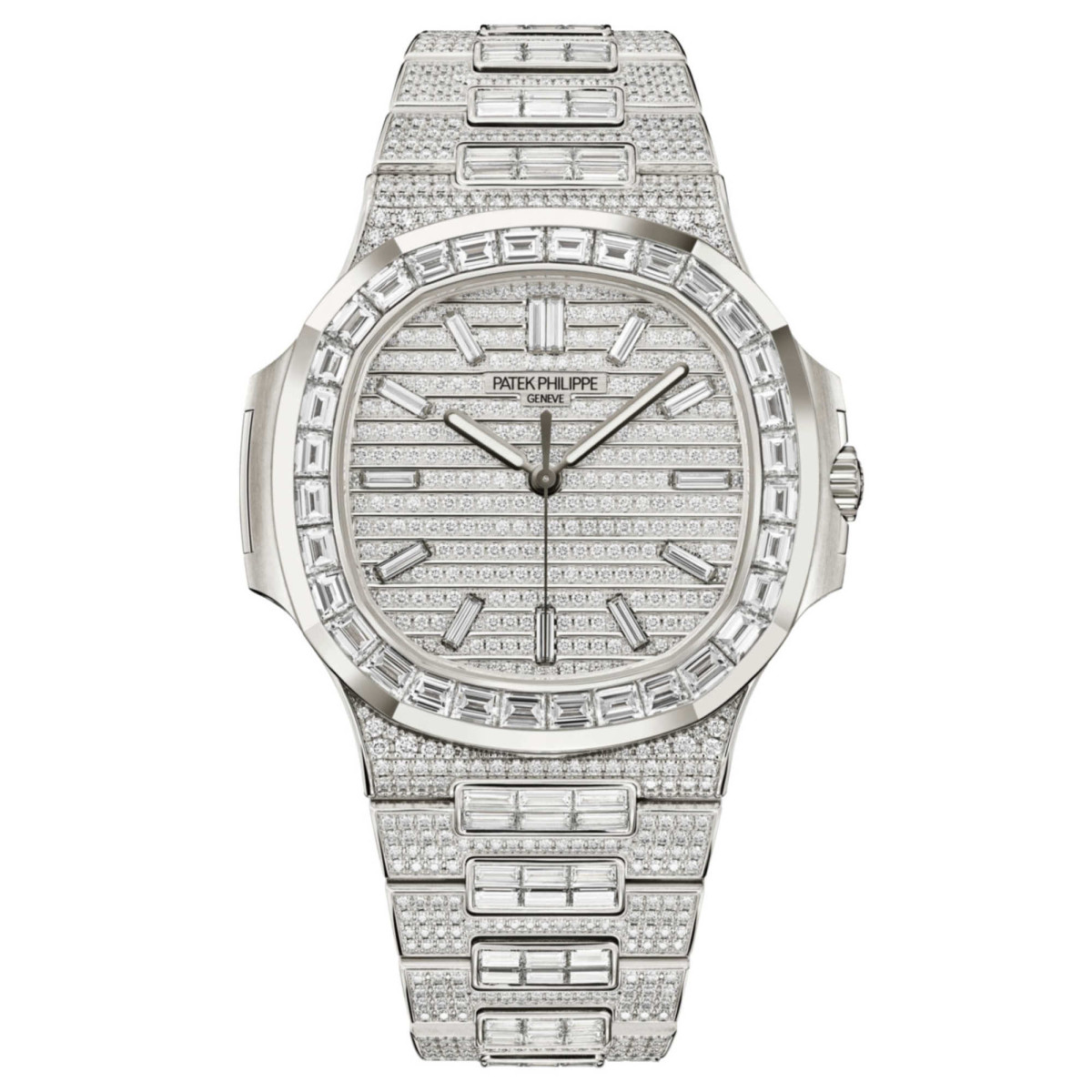 Ref. 5811/1460G-001 - Patek Philippe präsentiert ein neues Haute-Joaillerie-Modell aus Weißgold, dessen kunstvolles Spiel mit der Form der Steine das ikonische Design der Nautilus betont.
