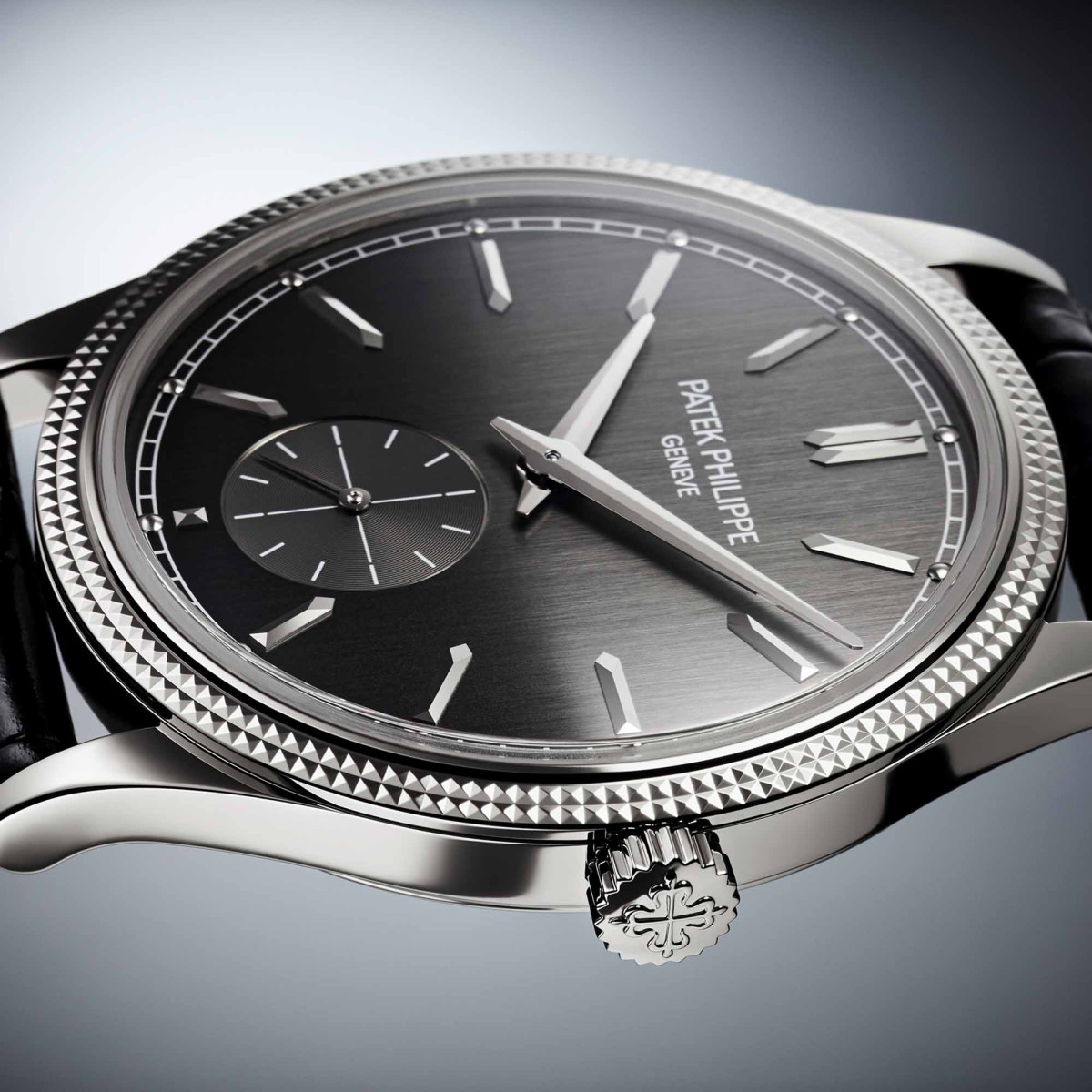 Ref. 6119G-001 - Patek Philippe rückt die berühmte Calatrava mit der „Clous de Paris“-Guillochierung auf der Lünette wieder ins Rampenlicht. Deshalb hat die Manufaktur ihren Durchmesser leicht vergrößert und ihr Design in einem aktuellen Stil überarbeitet. Die geschossförmigen aufgesetzten Indexe aus Weißgold sind facettiert und wurden mit Dauphine-Zeigern für die Stunden und Minuten kombiniert. Sie verleihen dem Zifferblatt ein schlichtes, zeitloses Aussehen. In dem ausgesprochen eleganten und feinen Gehäuse aus Weißgold verbirgt sich das neue Uhrwerk 30-255 PS mit Handaufzug und einer Gangreserve von 65 Stunden.