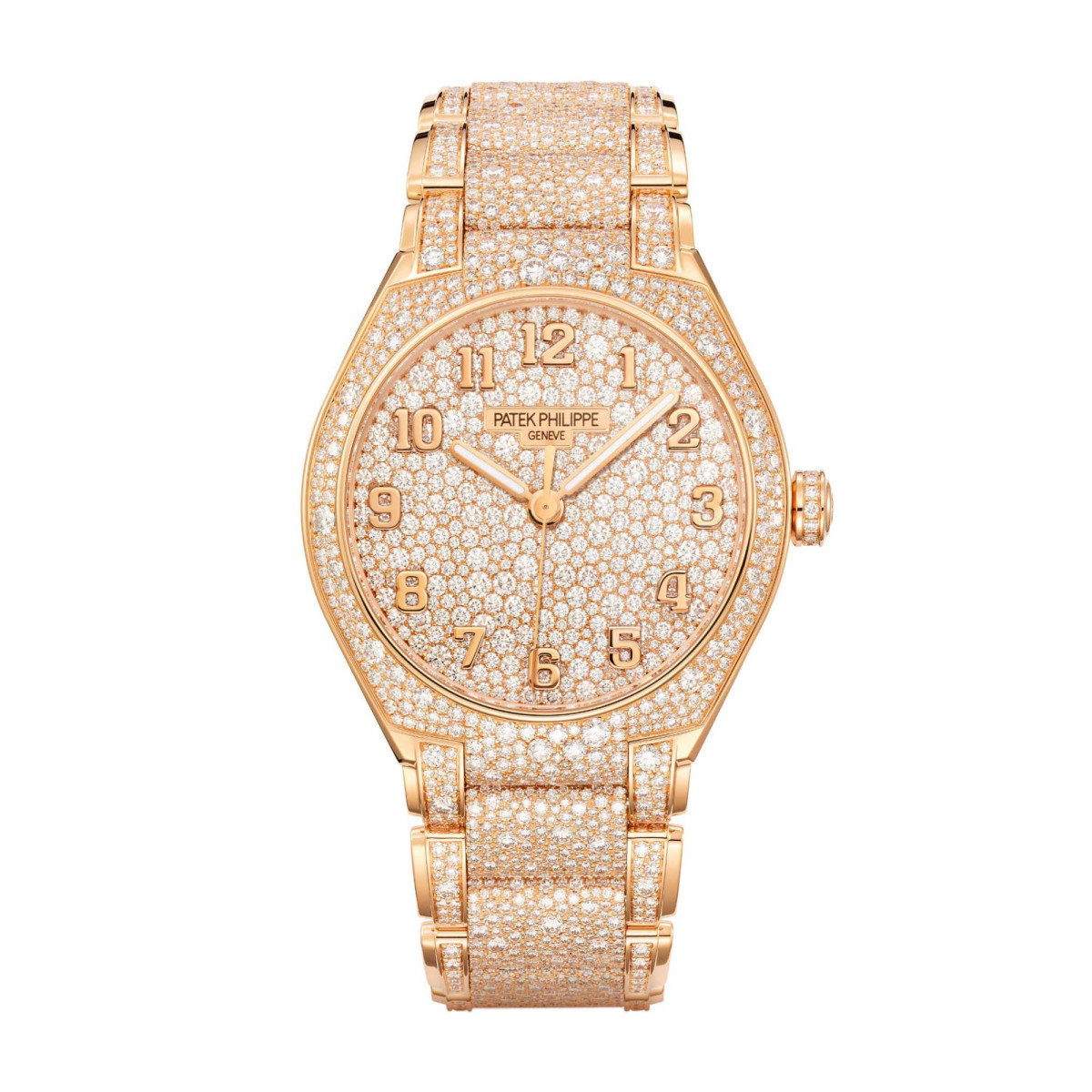 Ref. 7300/1450R-001 - Die Twenty~4 Automatik ist die neueste unter den Patek Philippe Damenuhren. Sie betont ihre zeitlose Eleganz mit einer Haute Joaillerie-Ausführung in Roségold mit Diamanten in willkürlich angeordnetem Pavé-Besatz.