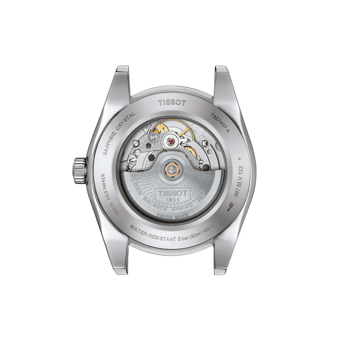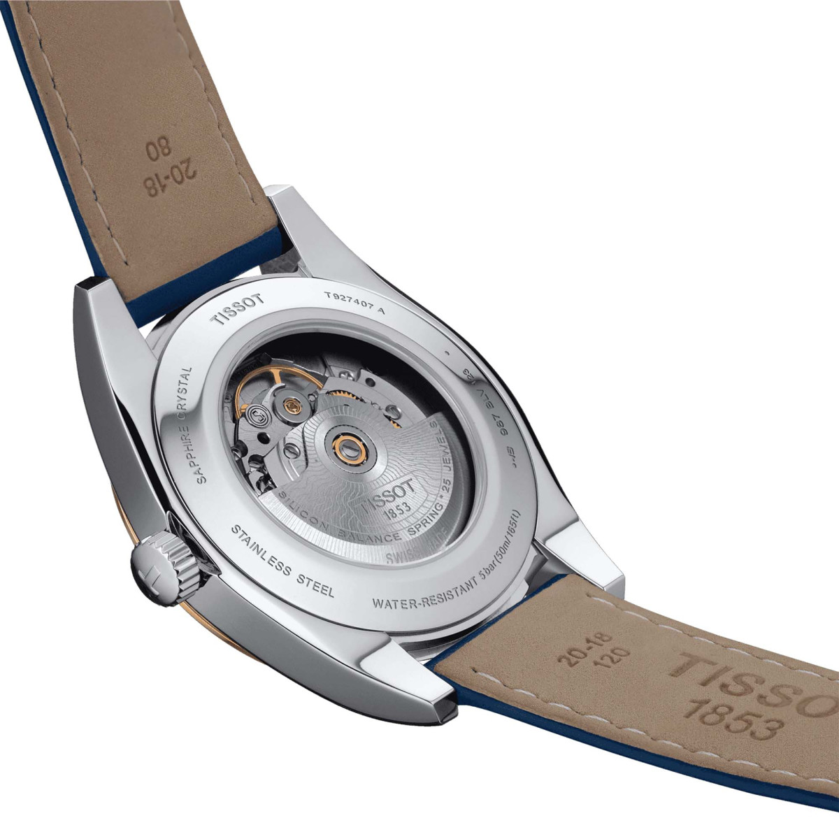 Ref. T927.407.46.041.00 - Zu einem Gentleman gehört auch ein stilvoller, klassischer und eleganter Zeitmesser. So wie die Tissot Gentleman Powermatic 80 Silicium 18K Goldlünette, die ihre Klasse bereits im Namen trägt. Auf dem 40 Millimeter messenden 316L-Edelstahlgehäuse sitzend, verleiht die massive 18 Karat Goldlünette der Uhr eine edle Optik und bildet gemeinsam mit den gleichfarbigen Indexen und Zeigern einen gelungenen Kontrast zum Zifferblatt. - Gentleman-like präsentiert sich auch das Innere der Uhr, zu bestaunen durch den gläsernen Sichtboden aus Mineralglas: Das Powermatic 80 Automatikwerk – hier in der Ausführung mit Siliziumspirale – bildet das Herz dieses Zeitmessers und sorgt für bis zu 80 Stunden Gangreserve und konstante Präzision. - Dieses Modell besitzt eine massive 18K Roségoldlünette, ein dunkelblaues Zifferblatt mit Indizes und Datumsanzeige sowie ein dunkelblaues Lederarmband mit Butterfly-Faltschließe mit Drückern.