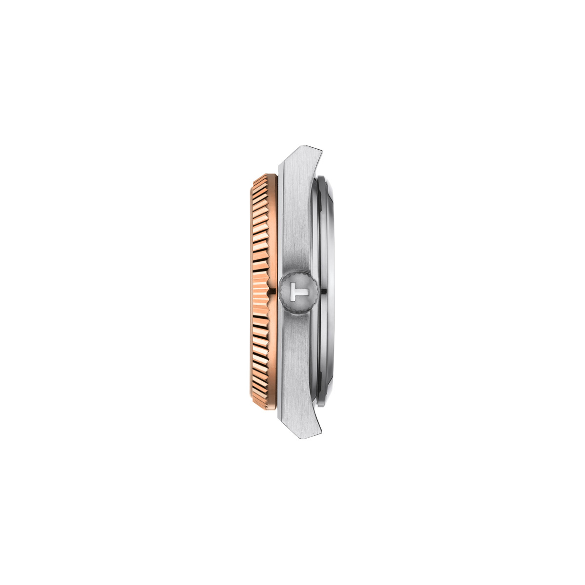 Dieses Tissot PRX Goldlünette 35mm Modell verfügt über ein 316L-Edelstahlgehäuse mit einer massiven, kannelierten 18K Roségoldlünette. Auf dem eisblauen Zifferblatt mit Datumsanzeige sitzen roségoldfarbene Indizes sowie gleichfarbige, mit SuperLuminova Leuchtmasse beschichtete Stabzeiger.