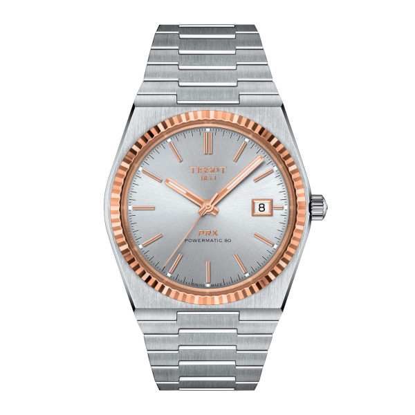 Einige Jahre später ließ Tissot den Namen PRX eintragen. „PR“ steht dabei für „präzise“ und „robust“. Das „X“ steht für die römische Zahl Zehn und für den Druck von 10 Bar, der einer Tiefe von 100 Metern entspricht, bis zu denen die Uhr wasserdicht bleibt.