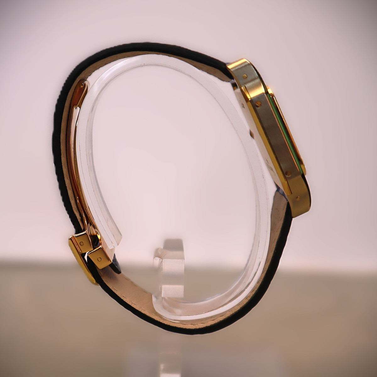 Dieses Exemplar stammt aus dem Jahr 1981 und repräsentiert eine besonders charmante Ausführung der Santos Dumont aus einer Zeit, in der klassische Zweifarbigkeit und dezente Eleganz das Design prägten. Eine ausdrucksstarke Vintage-Cartier für Liebhaber ikonischer Formen und zeitloser Uhrmacherkunst.