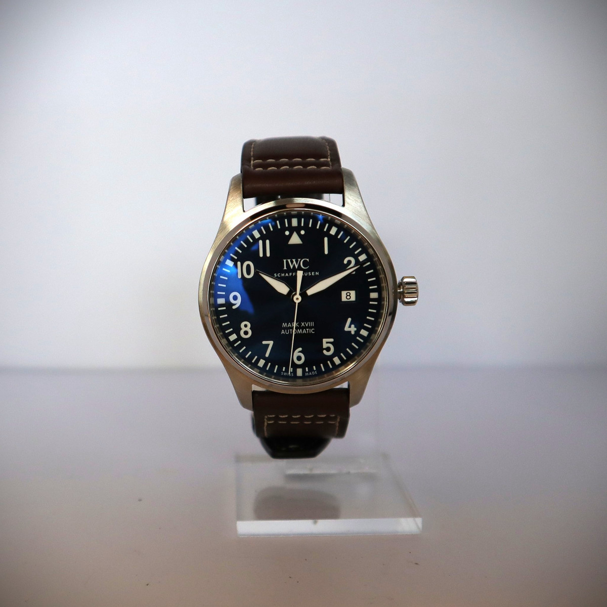 Das klare, funktionale Design der Mark XVIII bleibt dabei ganz der Tradition der IWC-Fliegeruhren treu, erhält durch die „Petit Prince“-Thematik jedoch eine emotionale Tiefe, die über reine Technik hinausgeht. Das Stahlgehäuse verleiht der Uhr eine robuste Alltagstauglichkeit, während das braune Kalbslederband mit Faltschließe den warmen, klassischen Charakter unterstreicht. Diese Uhr richtet sich an Liebhaber hochwertiger Zeitmesser, die nicht nur Präzision und Design schätzen, sondern auch die Geschichte und Symbolik hinter einer Uhr zu würdigen wissen. Eine besondere Mark XVIII, die Technik, Literatur und den Traum vom Fliegen auf elegante Weise miteinander verbindet.