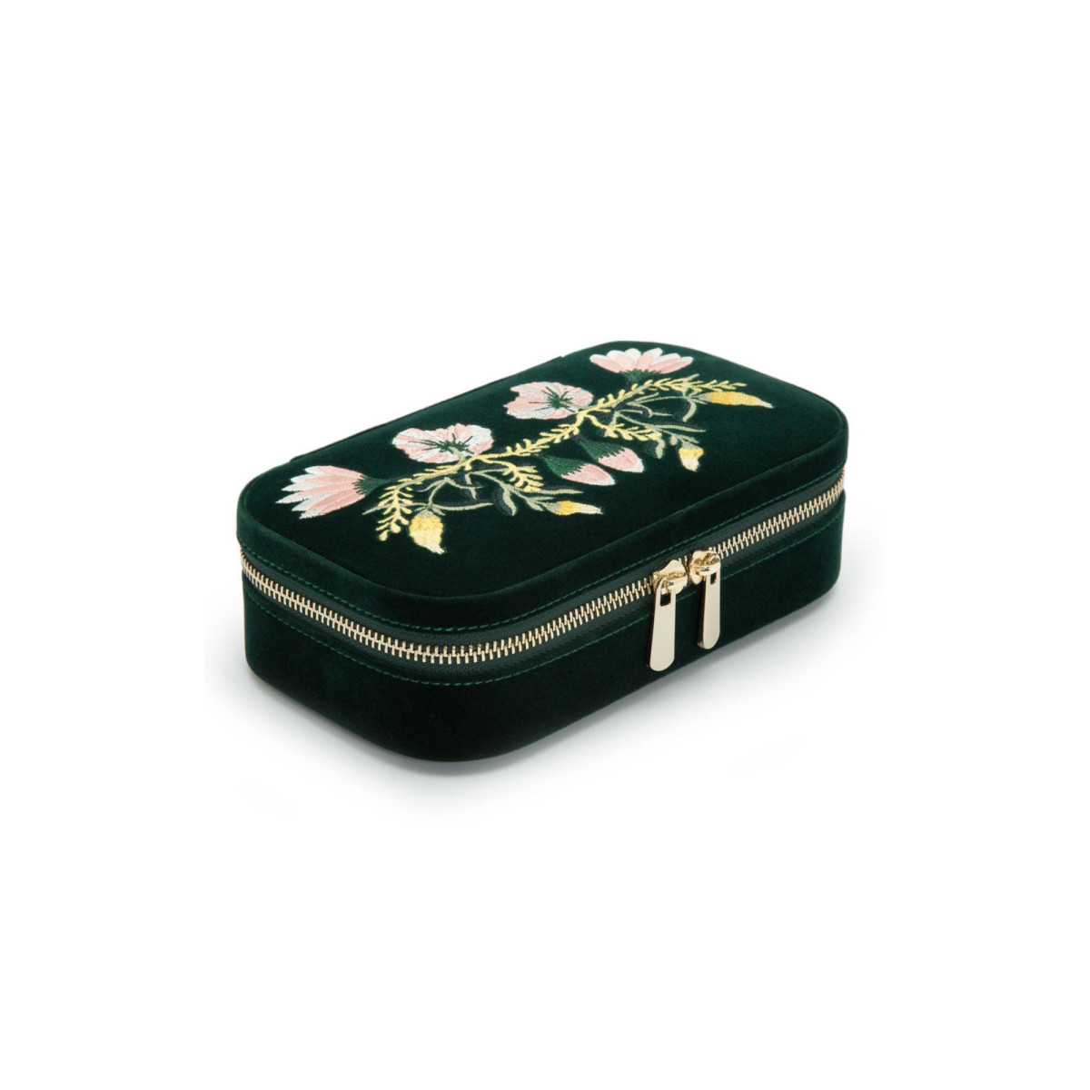 Ref. 393312 - Zoe ist frisch und fröhlich, raffiniert und verspielt zugleich. Organisieren Sie Ihren Schmuck unterwegs mit dem femininen und dennoch funktionalen Zoe Travel Zip Case. Mit forestgrünem Samtbezug, LusterLoc™ und Spiegel.