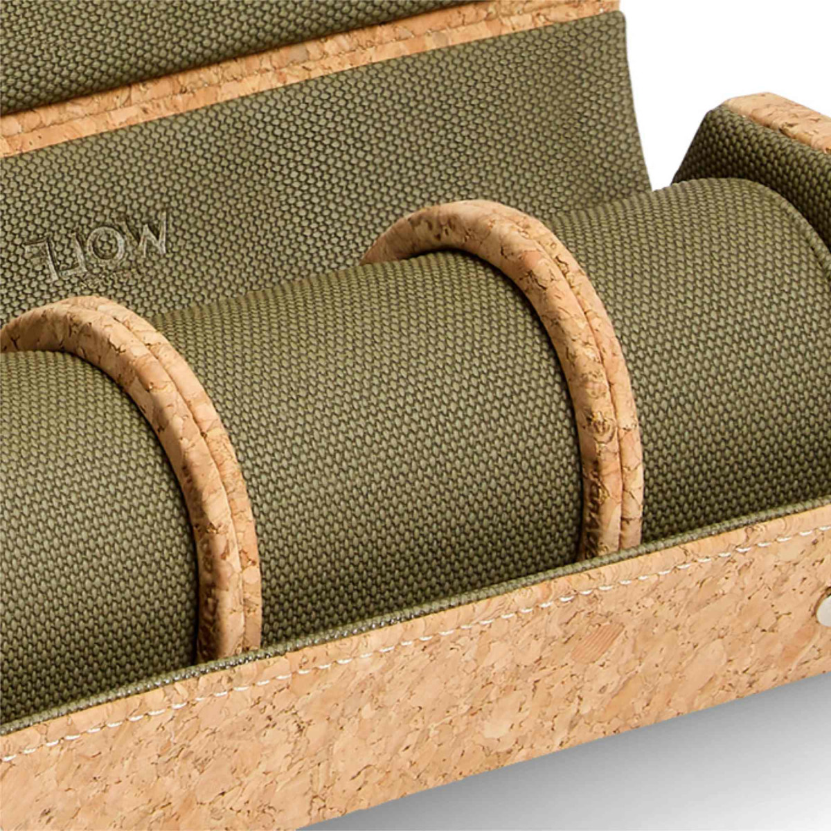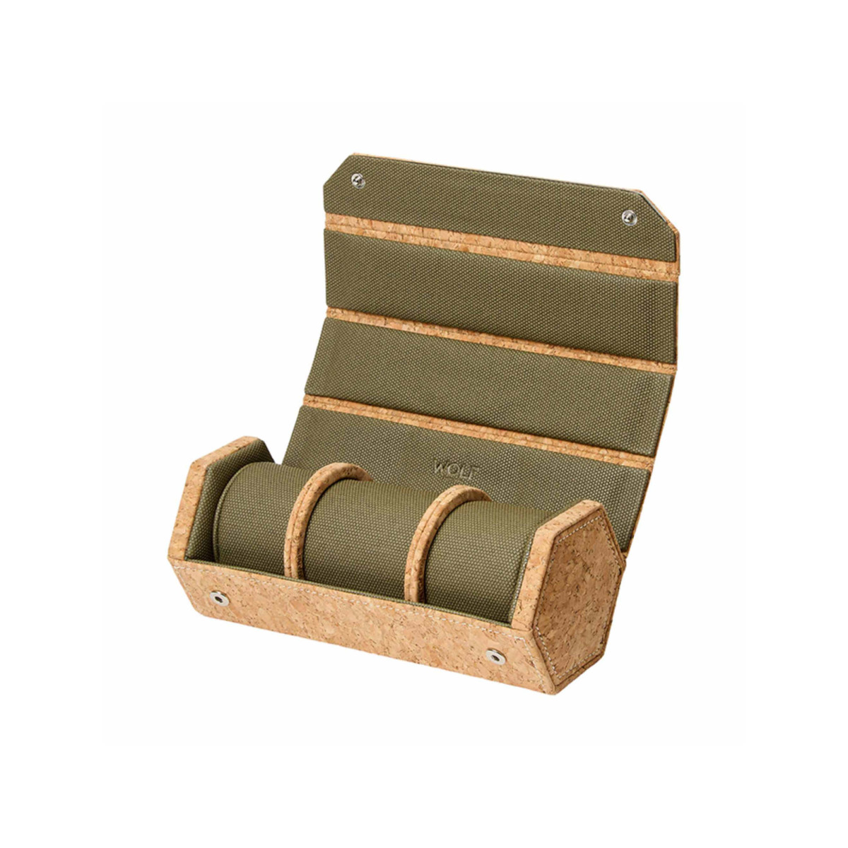 Ref. 668261 - Inspiriert von der Originalverpackung einer ganz besonderen Uhr wird Cortiça aus nachhaltig angebautem portugiesischem Kork handgefertigt. Dank seiner einzigartigen sechseckigen Form liegt das Uhrenrolletäschchen flach und bietet Platz für bis zu drei Uhren, die sich vor dem khakigrünen Innenfutter präsentieren. Das Uhrenrolletäschchen lässt sich zum Transport oder zur ordentlichen Aufbewahrung auf einer Kommode einfach zusammenbinden.