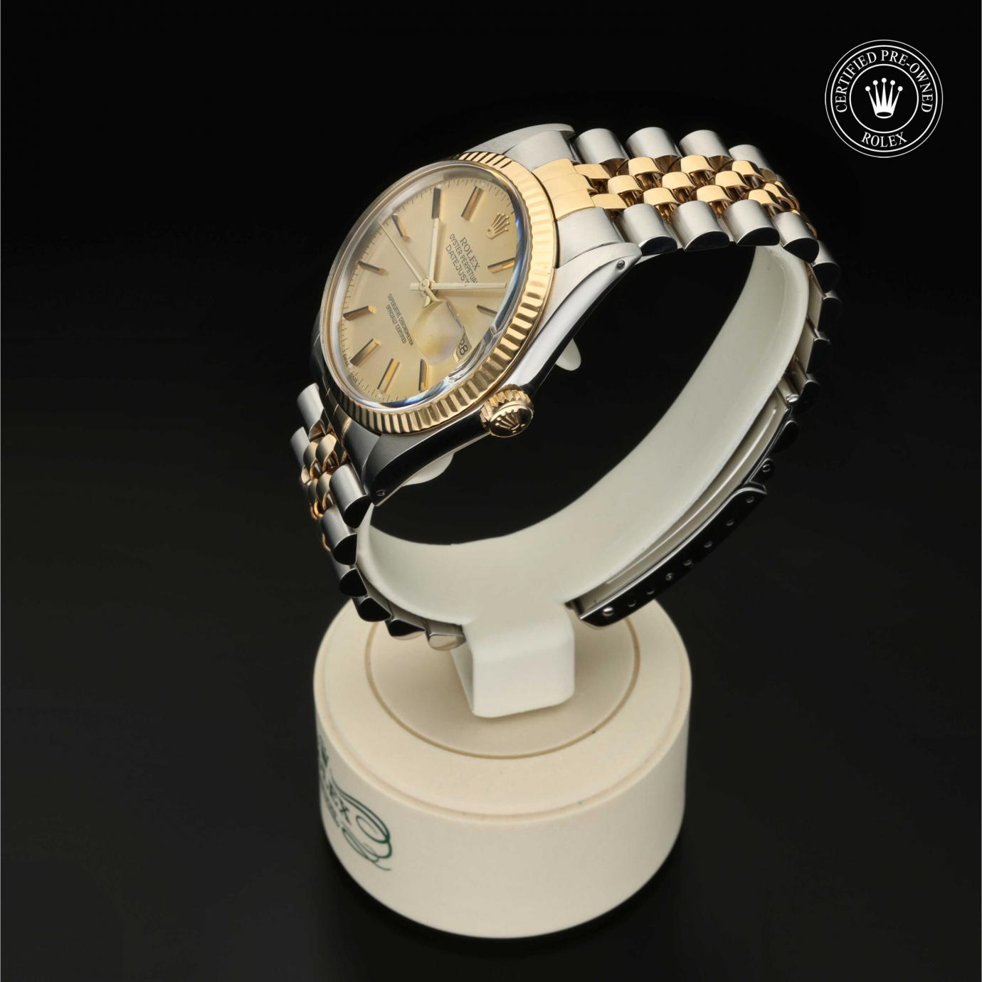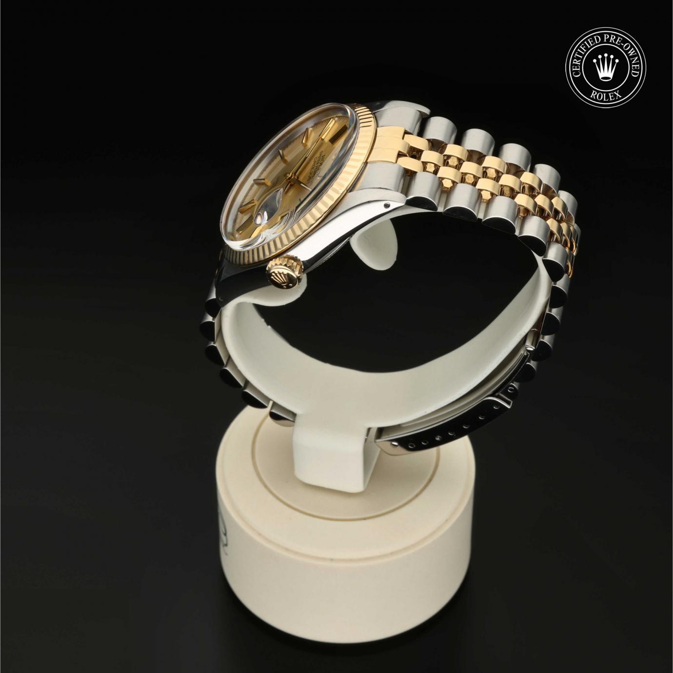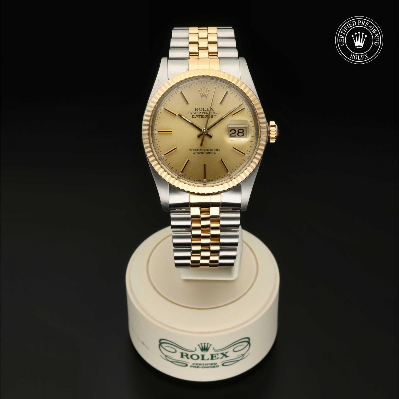 Bei ihrer Einführung im Jahr 1945 war sie das erste automatische und wasserdichte Armbandchronometer, das in einem Sichtfenster auf der 3‑Uhr-Position des Zifferblattes das Datum angibt.Die Datejust ist erhältlich in Edelstahl Oystersteel, als Version in Edelstahl Oystersteel und Gelb-, Weiß- oder Everose-Gold sowie als vollständig in 18 Karat Gold gefertigte Version mit einer großen Auswahl an Zifferblättern, Lünetten und Armbändern. Sie ist ebenfalls in Ausführungen mit Edelsteinbesatz erhältlich.