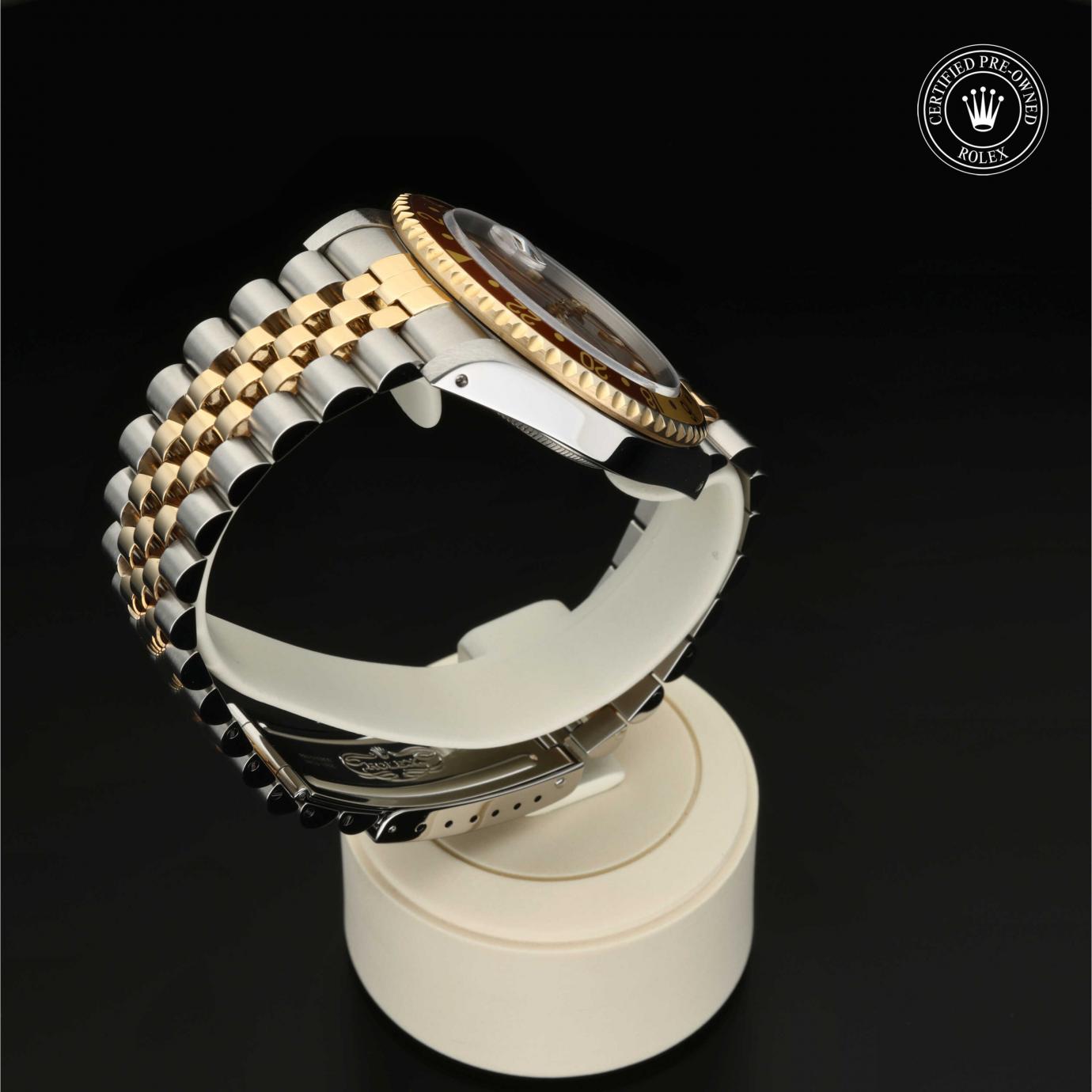 Das 1982 vorgestellte Modell verfügt über die legendäre zweifarbige Zahlenscheibe, die heutzutage aus Hightech-Keramik besteht, und zeigt gleichzeitig die Uhrzeit von zwei Zeitzonen an. Sie trat die unmittelbare Nachfolge der originalen GMT‑Master von 1955 an, die rasch von Transatlantik-Piloten als Navigationshilfe eingesetzt wurde.